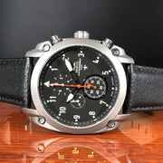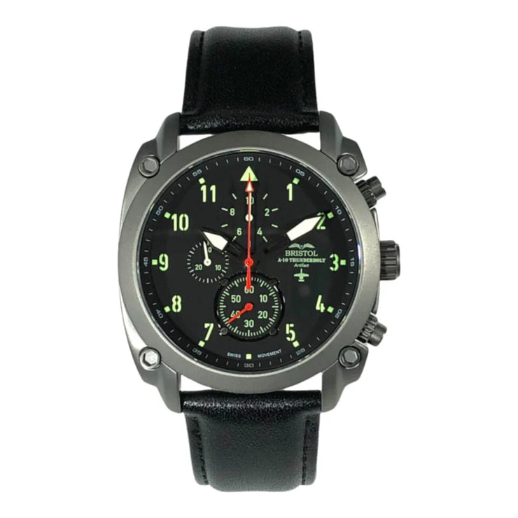 The A-10 Thunderbolt is the most iconic ground attack aircraft of modern times. Feared by enemies and beloved by its pilots and the soldiers on the ground it supports. We have designed and precision machined a rugged stainless steel case worthy of displaying an original artifact from an A-10 Thunderbolt II airframe. The movement is a precision Swiss made chronograph and the Super Luminova dial is protected by a scratch-resistant sapphire crystal. This design is limited to 1972 units in honor of the year of the A-10's first flight.